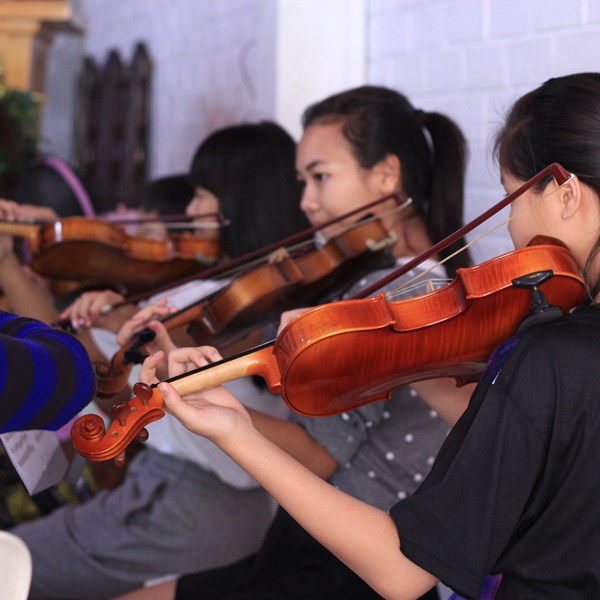 Foreningen Musikk gir Liv støtter Immanuel Music School i Bangkok. Der får barn fra slummen gratis musikkundervisning på fiolin, bratsj, cello og kontrabass.