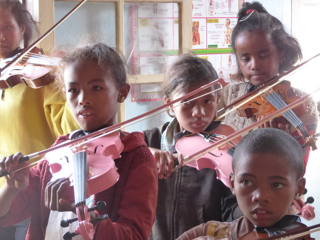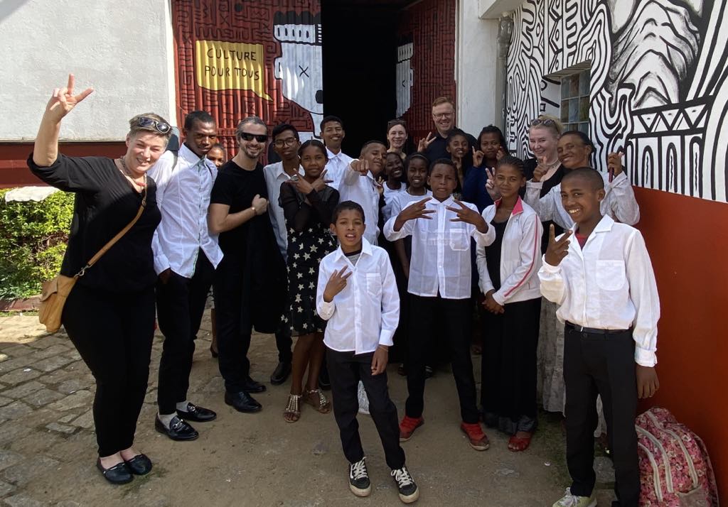 Etter en lang reise på hele 31timer ankom vi fjellbyen Antsirabe som ligger omtrent midt på Madagaskar. De siste 5,5 timene av reisen var i bil på bekmørk og humpete landevei med mange store hull. Dagen etter vi fikk endelig møte barna fra musikkskolen. Og for en velkomst det ble! Barna sang av full hals og danset oss velkommen i et lite klasserom i den slitte kulturbygningen midt i sentrum. Det ble delt ut gaver og utstyr til musikkskolen og etterpå var det øvelse med en gang sammen med barna. Vi skulle nemlig spille to konserter allerede samme ettermiddag i Antsirabe. Hele gjengen ble raskt bestevenner med barna fra Madagaskar gjennom lek, øving, dansing og klemming.